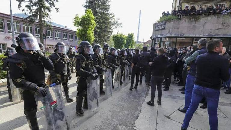 On Monday, Kosovar police and the NATO-led Kosovo Force, or KFOR, were seen protecting the municipal buildings in Zvecan, Leposavic, Zubin Potok and Mitrovica, four municipalities in the north that held early elections last month.