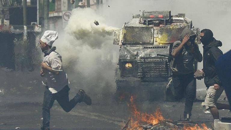 Police used water cannons and tear gas to disperse protesters during the protest in the Chilean capital.