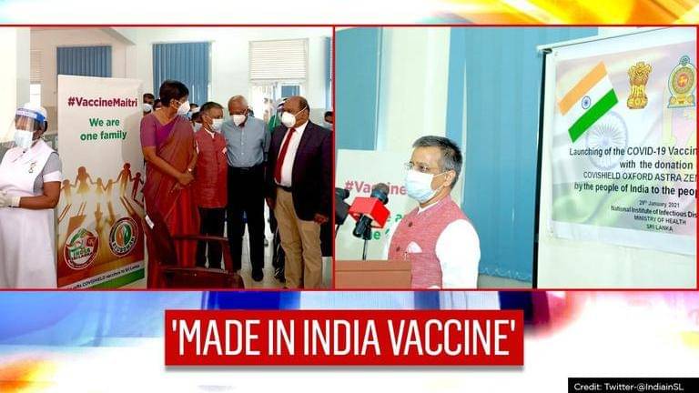 Made in India vaccine was administered in various hospitals in Colombo.This drive was formally launched at the National Institute of Infectious Diseases. Hon'ble MOS Dr. Sudarshini Fernandopulle , High Commissioner and various other dignitaries attended the event. #VaccineMaitri pic.twitter.com/jEhq7DT7uT