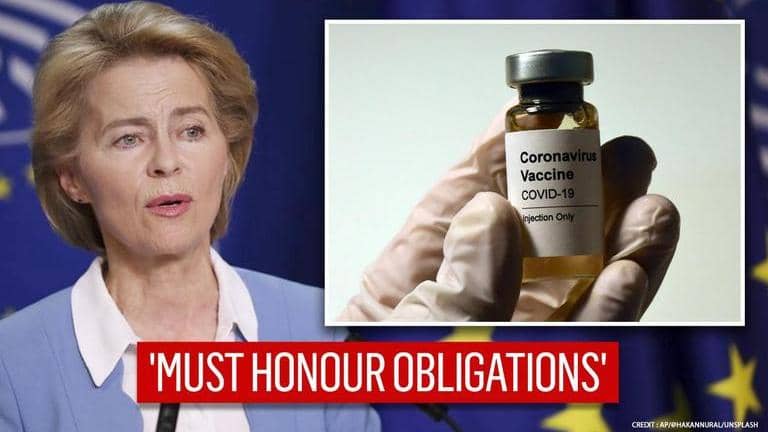 As tensions mounted between EU and pharmaceutical firms that have delayed deliveries, Von der Leyen said that COVID vaccine firms must honour their obligations.