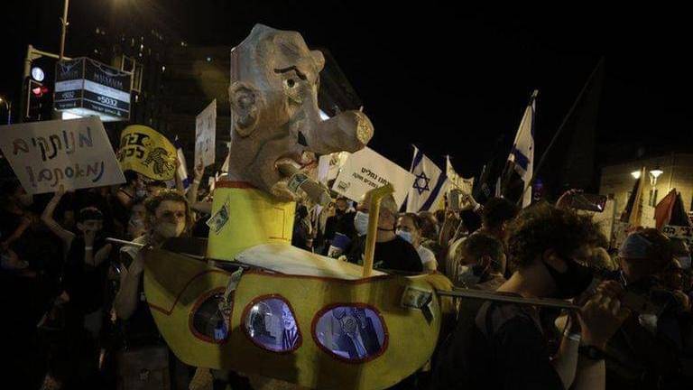 Many of the demonstrators, including many young unemployed Israelis, accuse Netanyau of mishandling the coronavirus crisis and the economic damage it has caused.