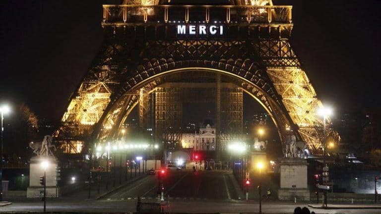Eiffel Tower says 'Merci', 'thank you' to health workers fighting Coronavirus