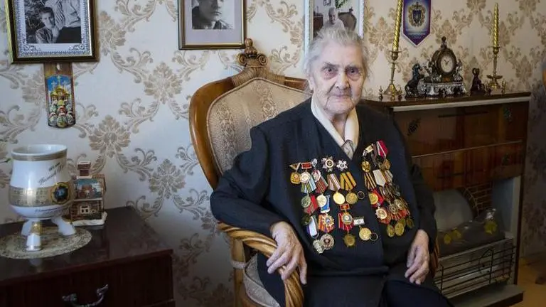 Efremova served as a nurse in field hospitals on the front lines of the Red Army throughout the war and the apartment she shares with her daughter in Russia’s Far Eastern city of Yakutsk is decorated with numerous war-time photos. Dozens of medals weigh heavily on her jacket.