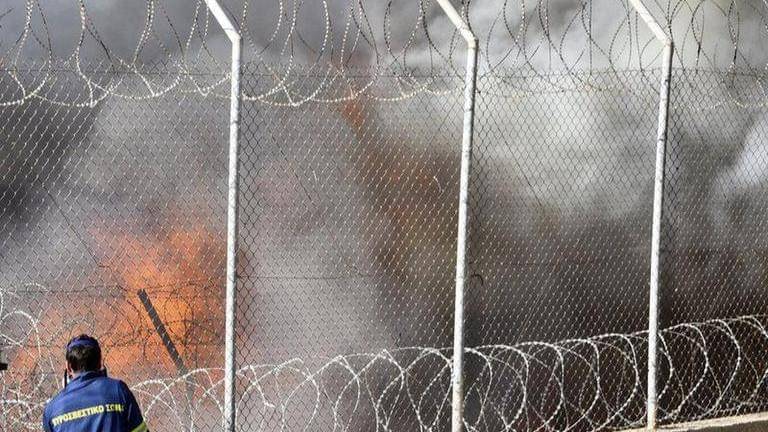 Fire burns tents, structures in Greek refugee camp