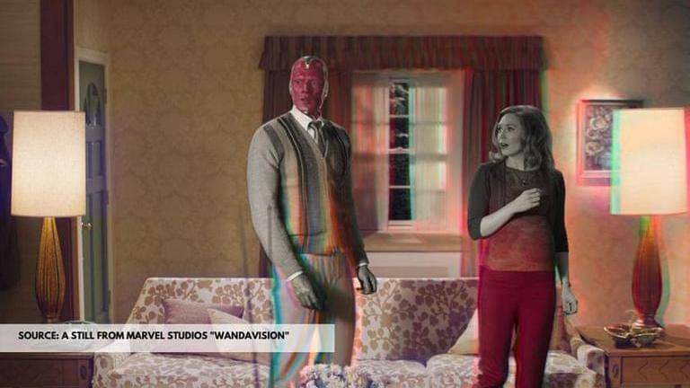 Credit: Still of Elizabeth Olsen and Paul Bettany in Marvel Studios "WandaVision" Episode 4 (Disney+Hotstar)