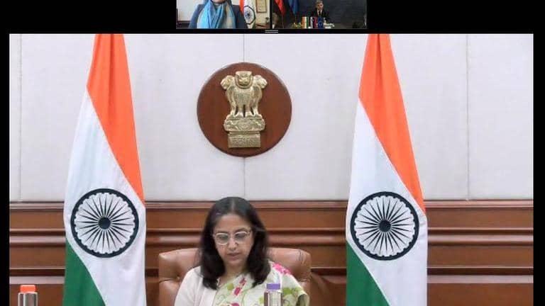 MEA spokesperson Arindam Bagchi shared images of the virtual meet on Twitter and wrote that "regional and global issues of mutual interest were discussed."