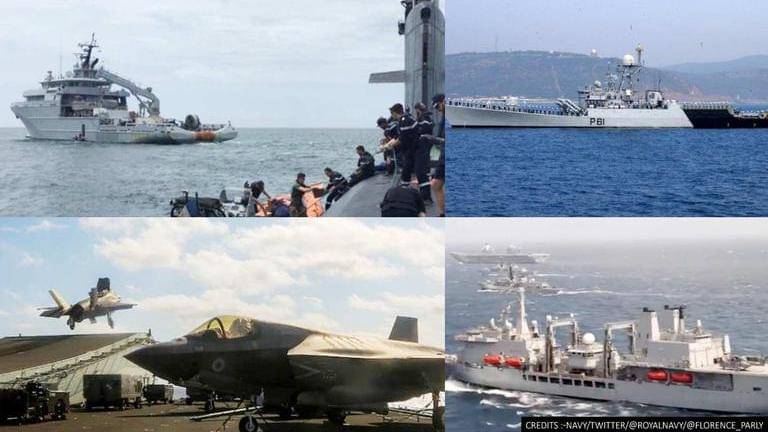 📹 Watch @HMSQNLZ lead a close formation of ships from the #RoyalNavy and #IndianNavy as the two countries carried out training during a two-day exercise. #CSG21
