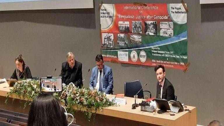 The demand was made during the international conference held on March 24 titled, 'Bangladesh: Justice after genocide' at Leiden University in The Hague and organized by Europe-based Bangladeshi diaspora organization European Bangladesh Forum (EBF) in collaboration with the Leiden University UNICEF Student Team the Hague & SESA (Southeast and South Asian) Club by CIROS (Community of International Relations and Organisations Students). The conference featured a couple of Q&A discussions, wherein over 72 students from various universities of the Netherlands participated.