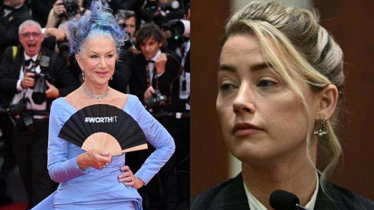 Helen Mirren turned heads on day 1 of Cannes as she walked down the red carpet for Johnny Depp's film Jeanne du Barry, which opened the festival. Mirren's standout look made headlines for reasons other than her sartorial choices. The Shazam 2 actress was seen carrying a traditional hand-fan in beige, with '#WORTHIT' featured across it. Many saw this as a silent form of support for Amber Heard. For context, Heard and Depp were involved in a much-publicised defamation trial which the former lost to the latter. A hashtag created at the time of the trial to support heard was '#AmberIsWorthIt'. Mirren's fan was interpreted as a gesture of silent support for Heard as the former walked the red carpet for Depp's 'comeback' film.