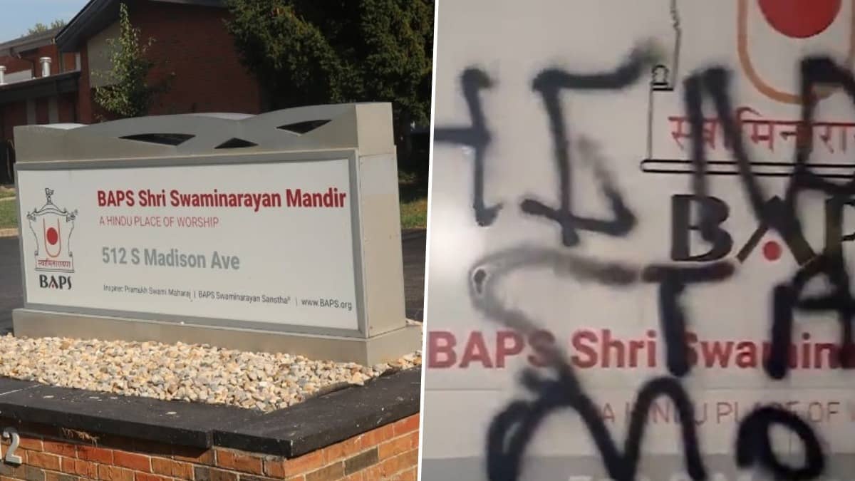 Hindu BAPS Temple In Indiana USA Vandalised With Anti-India Grafitti, Khalistani Involvement Suspected