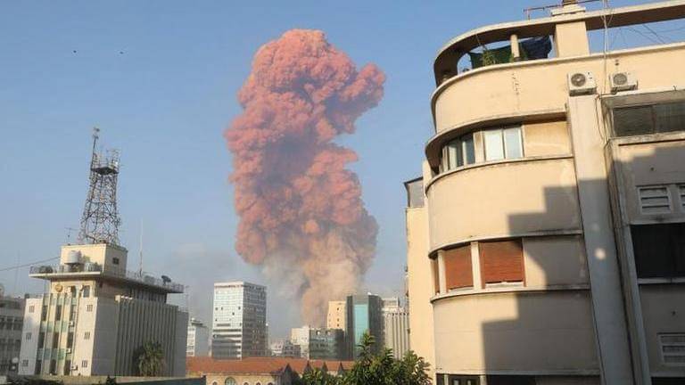 Online video showed a column of smoke rising from the port area from what appeared to be an initial explosion, followed by a massive blast that sent up a mushroom cloud and a shock wave racing over the city.