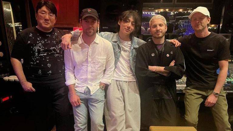 Bang Si Hyuk, popularly known as Hitman Bang, recently dropped a photo of him with BTS' Jungkook and Euphoria singer Andrew Watt. In the photo, Jungkook took the center frame and wrapped his arms around Hitman Bang and Andrew Watt while posing for the camera. Bang Si Hyuk captioned the post, "With #JK and @thisiswatt Thank you, @scooterbraun. You made this! #bighitmusic #sbproject #hybeamerica #HYBE." Soon after, ARMY took to the comments to post their reactions. One fan wrote, "So we are getting Jungkook collab? Or he’s participating in the scooter brown project!," while another user wrote, "This is the same place where it is captured justin bieber working on his new album. Jk×JB is coming soon."