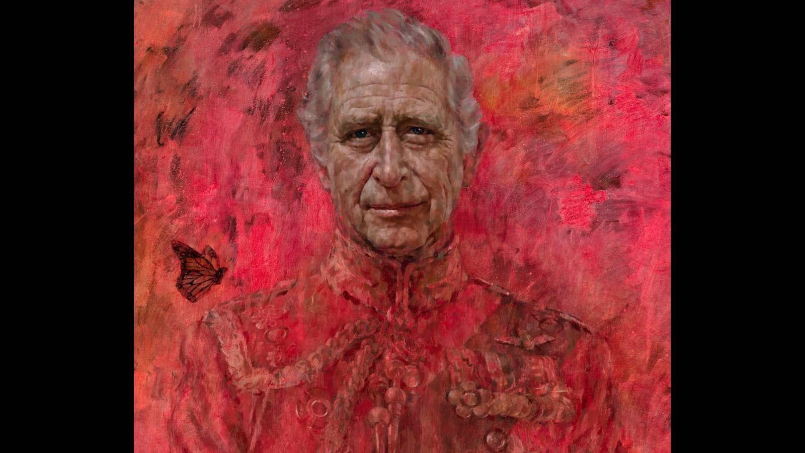 The painting by artist Jonathan Yeo captures the king with his hands clasped atop the hilt of his sword and a butterfly flitting above his right shoulder.