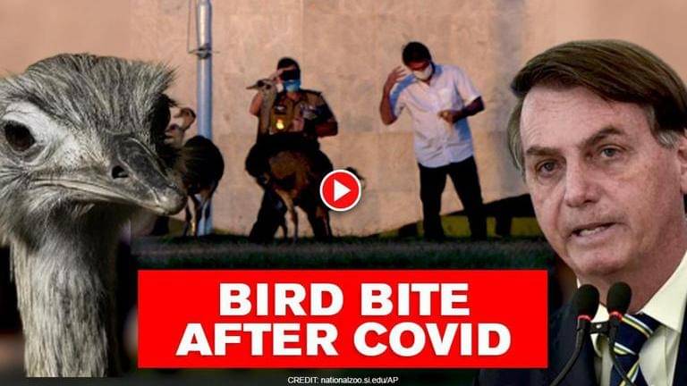 Jair Bolsonaro on Monday was bitten by an Emu-like bird which he tried to feed while under the coronavirus quarantine at the presidential palace in Brasília