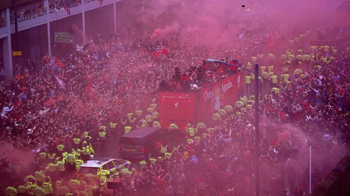 The incident followed a large celebration in the city center, where tens of thousands of dancing, scarf-and-flag-waving fans braved wet weather to line the streets and watch Liverpool’s players display the Premier League trophy atop two buses bearing the words “Ours Again.”