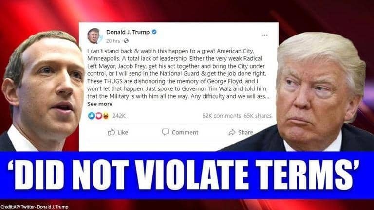 Facebook founder and CEO Mark Zuckerberg on Friday explained why the social networking website did not pull down US President Donald Trump's post that had a historical reference to the Civil Rights movement. In an elaborate post on Facebook, Zuckerberg said that the post remained online since it also contained information regarding the US Army and thus, was considered to be of relevant information to the citizens.