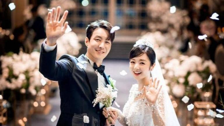 Shim Hyung Tak’s agency Alomalo Humain Entertainment recently shared several pictures from the wedding ceremony featuring the newlyweds looking elegant as bride and groom dressed in a white wedding outfit featuring embellishments and a black suit respectively. Take a look:
