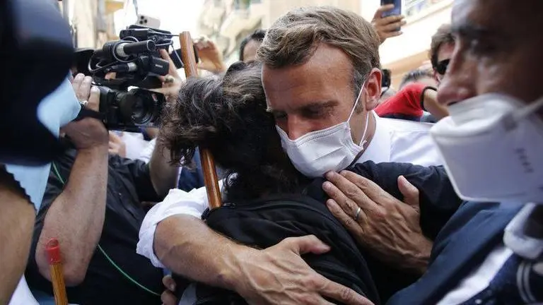 It was one of the most powerful moments of Emmanuel Macron’s lightning visit to devastated Beirut: confronted by a distraught woman in a sea of enraged residents, the French leader stopped and offered her a hug.