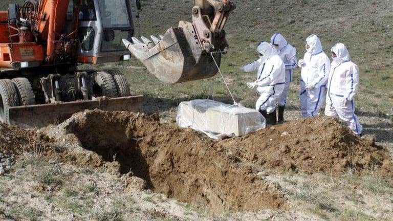 Once disinfected, the corpse is wrapped in a plastic bag, then carried to a grave site with pallbearers wearing protective gear. The body is interred in a grave sprinkled with lime and buried in concrete. Iran’s state TV recently showed images of clerics wearing special protective suits while performing Islamic burial rituals for victims.