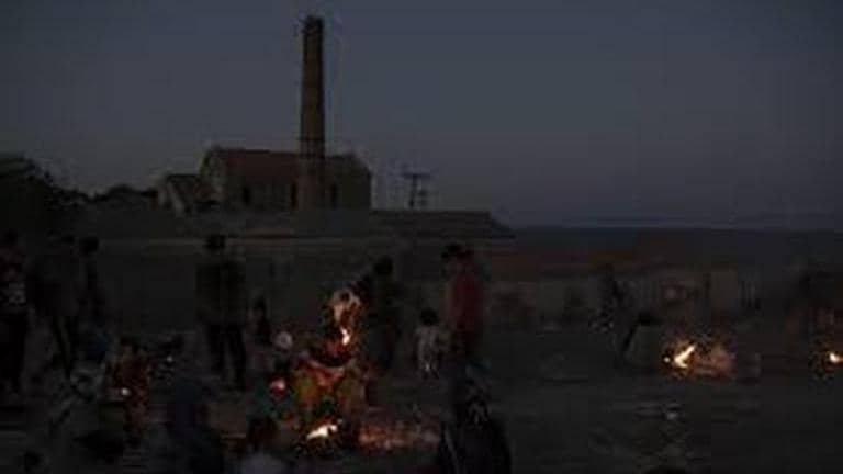 Thousands of people who fled the camp slept rough for a third night, under makeshift shelters beside the road to the island capital of Mytilene.