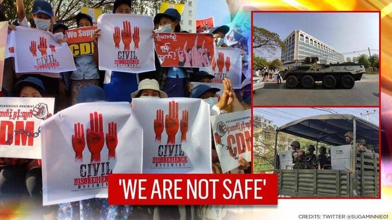 "The U.S. Embassy recommends all U.S. citizens shelter-in-place during the 8:00 p.m. to 4:00 a.m. curfew hours," US Embassy in Burma said in a statement. According to reports, the internet connectivity in Myanmar fell to 14% of ordinary levels late last night as several people reported their contacts could not be reached via internet messaging services. Social media was also flooded with unverified images of military convoys patrolling the streets of Myanmar on Sunday.