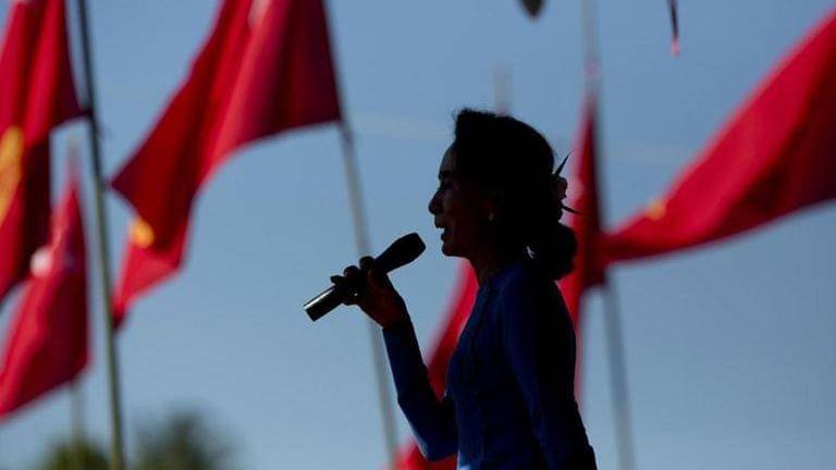 She was followed by the country's powerful armed forces commander, Senior General Min Aung Hlaing, who was accompanied by President Win Myint and Vice-President Myint Swe.