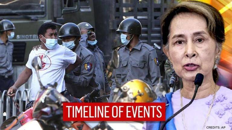 Myanmar is witnessing widespread protests over the recent military coup that saw the ousting of the democratically elected government of Aung San Suu Kyi. It's been a month since the military junta took over the government and arrested political leaders of the ruling National League for Democracy (NLD) party. Here's a timeline of events that took place in the country since the coup.