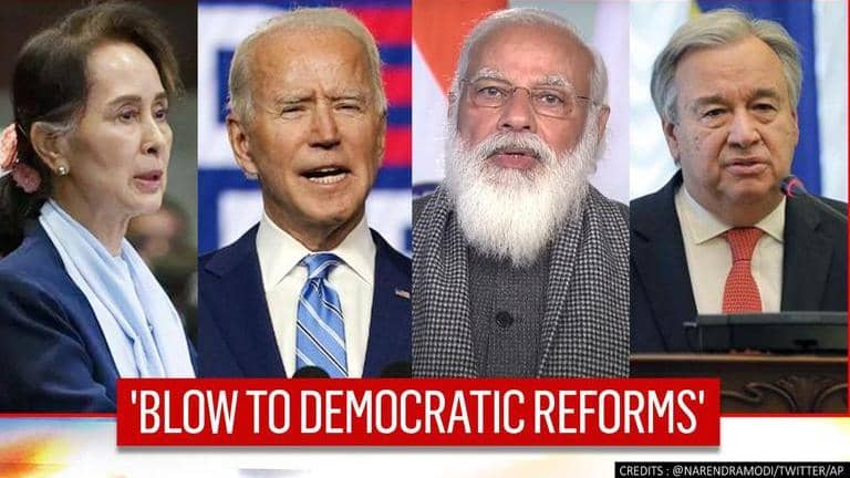 Alarmed by the situation in Myanmar, countries including India, US, Australia and Canada have condemned the unlawful detention.