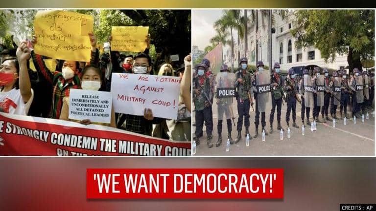 Angry Myanmar citizens, many of whom were seen clad in Suu Kyi’s political party signatures, protested “We do not want military dictatorship” as they rallied.