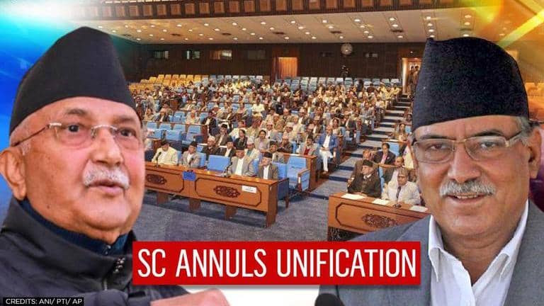 On Sunday, the Nepal Supreme Court annulled the unification of the two warring factions of  Nepal Communist Party (NCP) - Oli & Prachanda which merged in 2018.