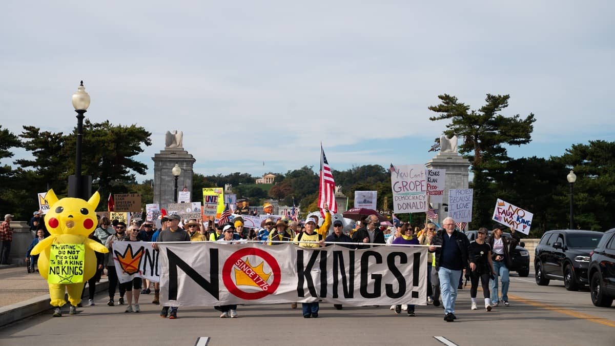 Thousands protested against President Trump's administration in the 'No Kings' movement, with over 2600 rallies across the US, demanding democratic accountability.