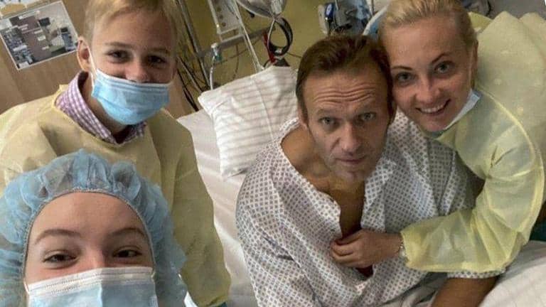 Navalny fell ill on a flight from Siberia to Moscow on Aug. 20 and was flown to Germany, where he was kept in an induced coma for more than two weeks as he was treated with an antidote. On Tuesday, he posted a picture of himself from his hospital bed in Berlin, hugged by his wife and children.