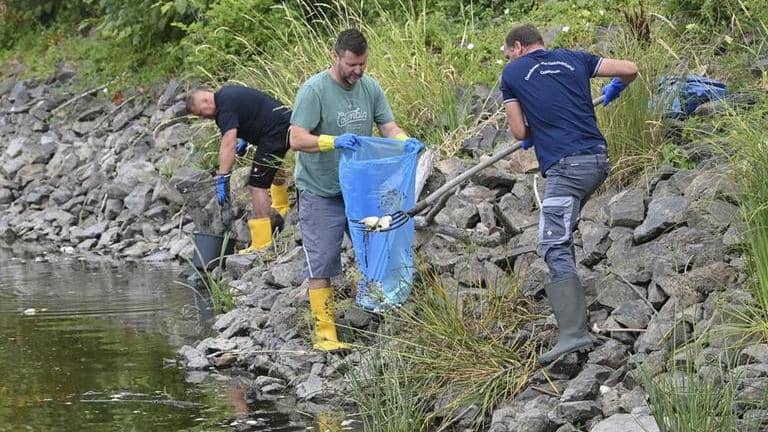 Polish station TVN24 station showed some fishermen in the Szczecin region trying to save individual fish by transferring them from the river to plastic pools.