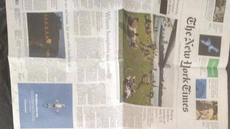 One of the photos show the painting, “The Parsonage Garden at Nuenen in Spring 1884,” flanked by a May 30 copy of the international edition of The New York Times and a book about a thief who in 2002 stole two Van Gogh paintings from the Amsterdam museum dedicated to the Dutch master. The Times front page features a story about the art thief.