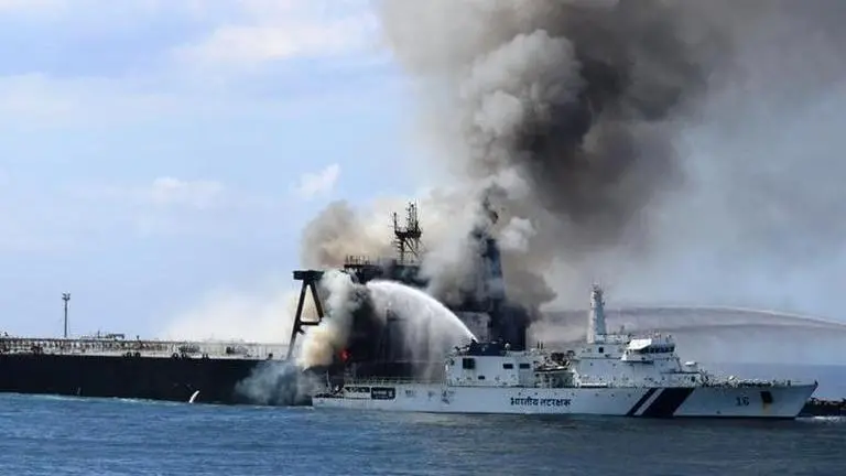 She said her organisation plans to take legal action over the fire. The tanker had 23 crew members - 18 Filipinos and five Greeks. Twenty-one crew left the tanker uninjured as the fire burned. The tanker was transporting crude oil from the port of Mina Al Ahmadi in Kuwait to the Indian port of Paradip, where the state-owned Indian Oil Corp. has a refinery.