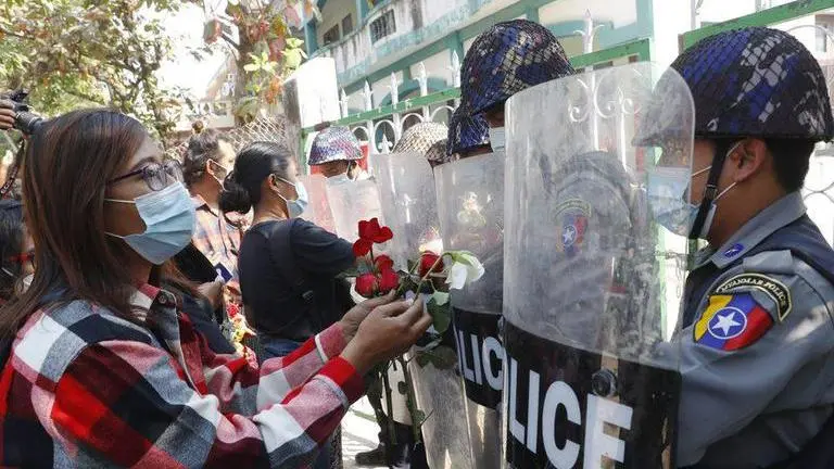At the city's Dagon University, meanwhile, many carried papers printed with images of red ribbons - the symbol of the civil disobedience campaign that activists and Suu Kyi's party has called for. “I believe we will have to lead this movement,” said student Min Han Htet. “All the people, including the students, will have to bring down the military junta. We will have to make sure that juntas never appear again in the next generation.”