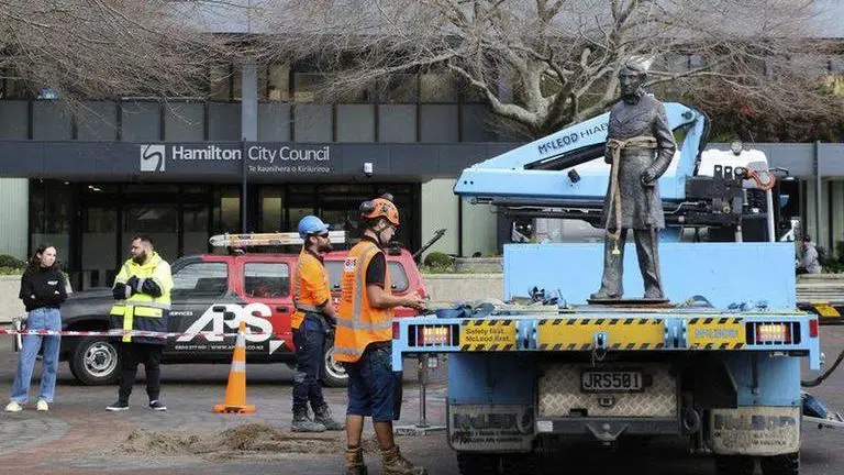 The New Zealand city of Hamilton on Friday removed a bronze statue of the British naval officer for whom it is named, a man who is accused of killing indigenous Maori people in the 1860s.