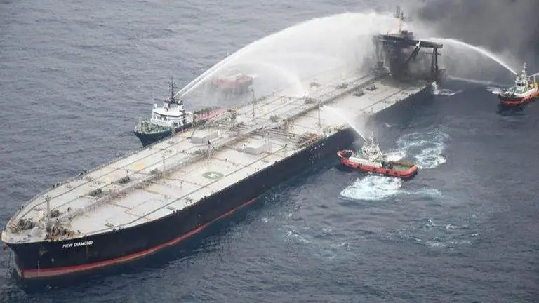 The MT New Diamond, which is carrying nearly 2 million barrels of crude oil, was damaged by two fires in a little over a week.