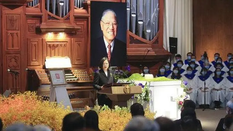 The service was held at the Aletheia University in Taipei on a balmy Saturday morning, with President Tsai Ing-wen honoring Lee for bringing a peaceful political transition to the island democracy.