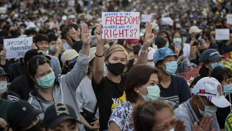 The demonstrators packed into a field near the Grand Palace and ignored a Thursday night plea from Prime Minister Prayuth Chan-ocha to cancel the event, which he said risked spreading the coronavirus and derailing the recovery of Thailand's battered economy.