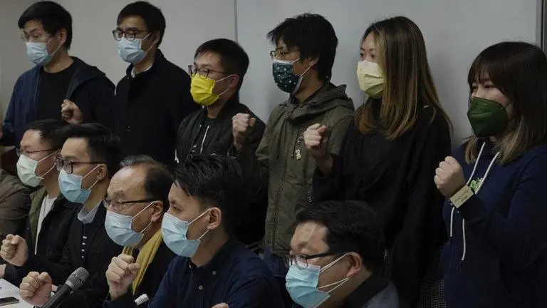 Authorities pointed to a plan called “10 steps to mutual destruction" allegedly indicating that the primaries were part of a broader push to cause damage to both Hong Kong and mainland China. That plan was published as an opinion piece in Apple Daily newspaper by former law professor and pro-democracy activist Benny Tai, who was also arrested on Wednesday. He said that between 2020 and 2022, there would be 10 steps to “mutual destruction,” including the pro-democracy bloc winning a majority in the legislature, intensifying protests, the forced resignation of Lam due to the budget bill being rejected twice, and international sanctions against the ruling Chinese Communist Party.