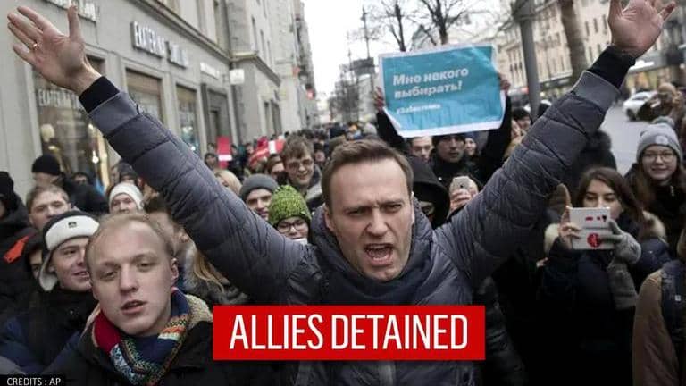 Several allies of Alexei Navalny were detained in Moscow after police raided their respective apartments and offices ahead of planned demonstrations.