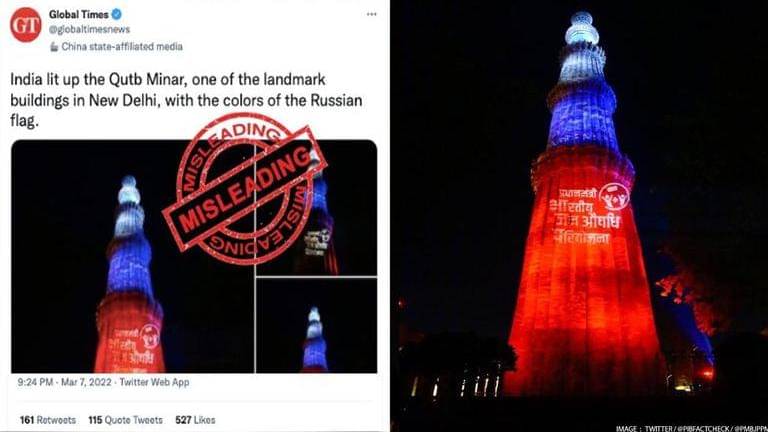 Chinese state-affiliated media Global Times on Monday shared images of Qutub Minar from an earlier PMBJP event to share fake news amid the Russia Ukraine war.