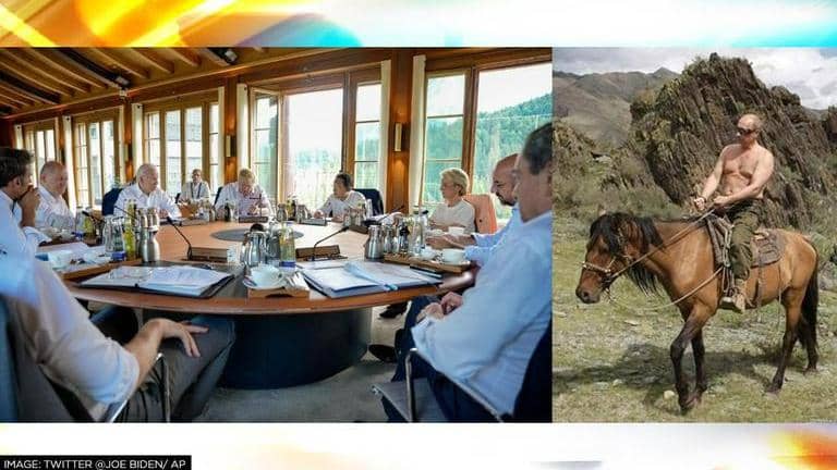 Seven prominent world leaders at the Group of Seven G7 summit on Sunday light-heartedly mocked Russian President Vladimir Putin's "tough man" image amid the ongoing Moscow-Kyiv war. Seated at a roundtable for the G7 opening session in Germany, the leaders were heard poking fun at Putin's "bare-chested horseback ride," a picture that the Kremlin had posted a while ago.