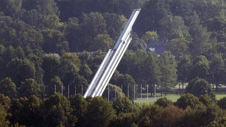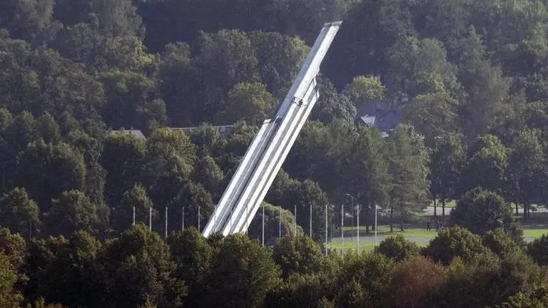 Heavy machinery was spotted behind a green privacy fence at the foot of the nearly 80-meter (260-foot) obelisk shortly before it was felled. The column, which had stood like a high-rise in downtown Riga, crashed into a nearby pond, causing a huge splash at Victory Park.