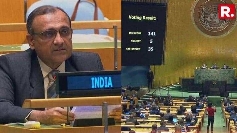India, China, Iran, Iran, Pakistan and 30 others abstained from voting against Russia at the UNGA. Of the total votes, 141 were in favour of the resolution, 5 against, 35 abstentions. India is to address the UNGA on the reason for its vote.