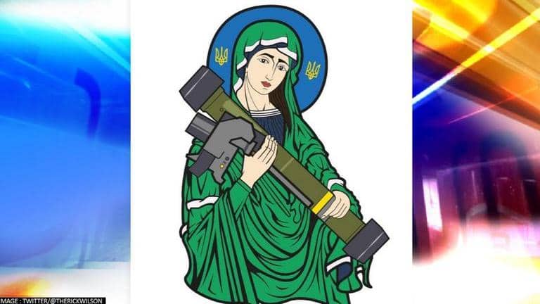 Amid the ongoing Russia Ukraine war, an image symbolic of Ukraine’s struggles to survive amidst Russian attacks has gone viral online. An animated image of a saint with ‘Javelin’ in her arms is being portrayed as the icon of Ukraine’s war spirit. The Javelin, an anti-tank missile launcher, held by the saint in the viral image is also being used as the icon for Ukraine’s newly launched website to raise funds for the war.