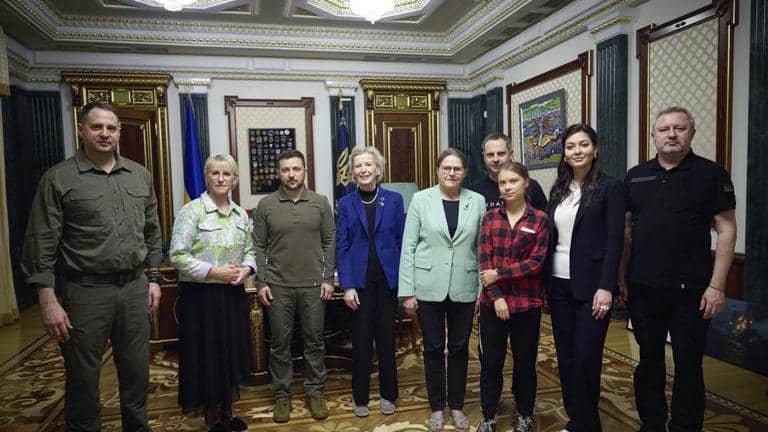 Ukrainian President Volodymyr Zelenskyy met Thursday with Swedish environmental activist Greta Thunberg and prominent European figures.