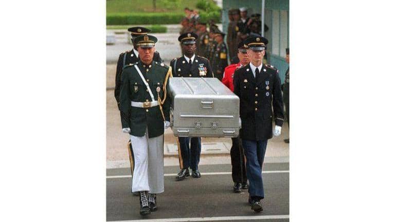 South Korea handed over the remains at a ceremony at Incheon airport outside Seoul, and a Chinese military transport plane flew them to Shenyang, a northeastern Chinese city near the North Korean border.