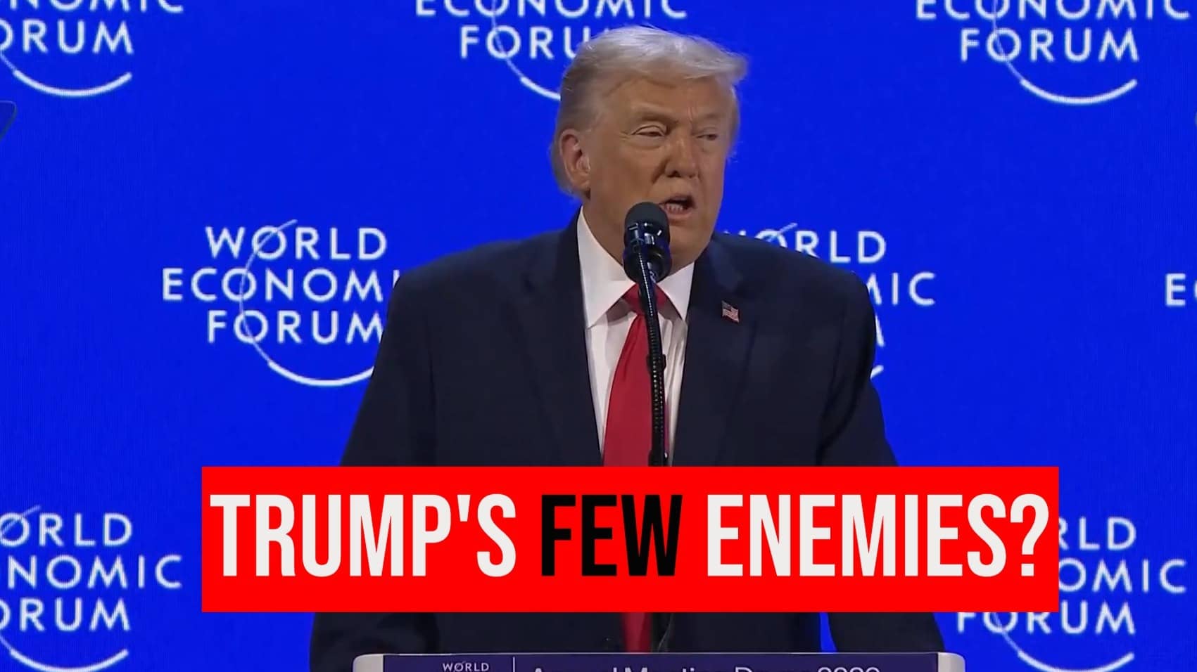 Donald Trump began his speech by saying, "It’s great to be back in beautiful Davos, Switzerland, and to address so many respected business leaders, so many friends...few enemies." With Trump offending a series of nations recently, the verbal irony of Trump having "few enemies" left the audience laughing.